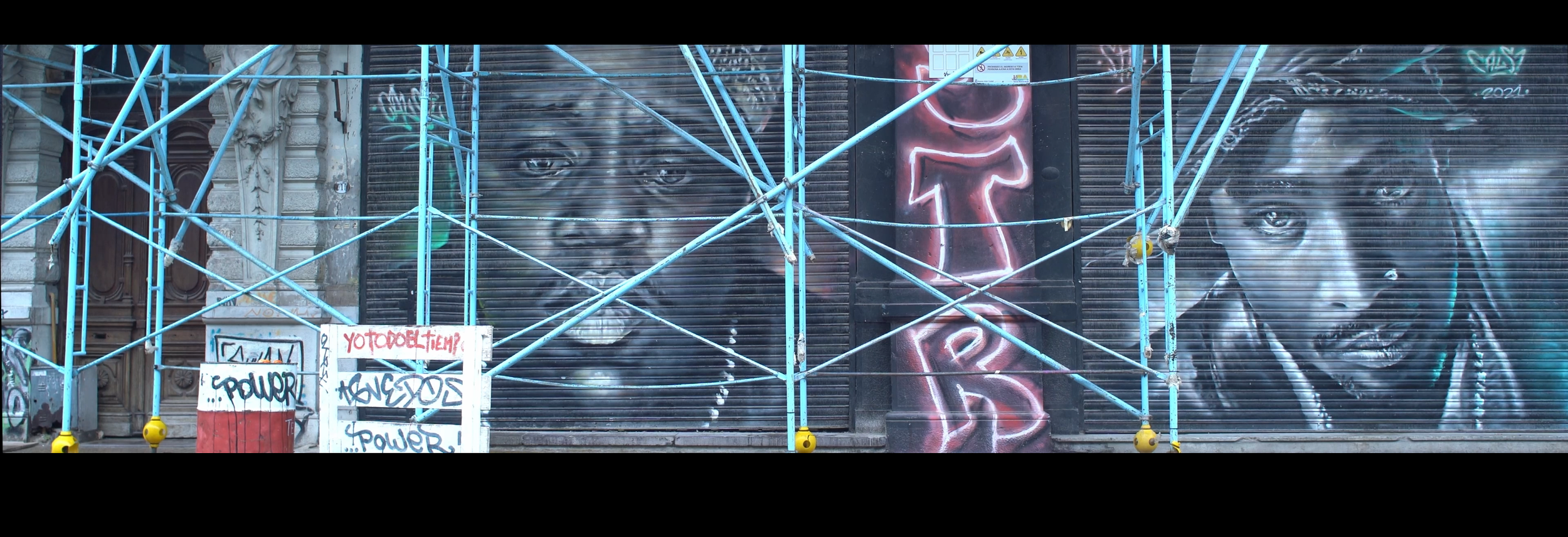 Aquí es donde yo introduzco a mi personaje, a mi correspondencia, a un humano con el que tope por causalidad; ha sido un viaje hasta ahora, y uno bien bonito. Una noche, volviendo de la facultad, había un hombre pintando un mural de Luca Prodan. Me acerqué a preguntarle si conocía el paradero de dos persianas metálicas que habían sido retiradas, pertenecientes a un edificio de la familia Roca, en la calle Bolívar (foto 3). En una estaba pintado Tupac Shakur y en la otra, Notorious B.I.G.